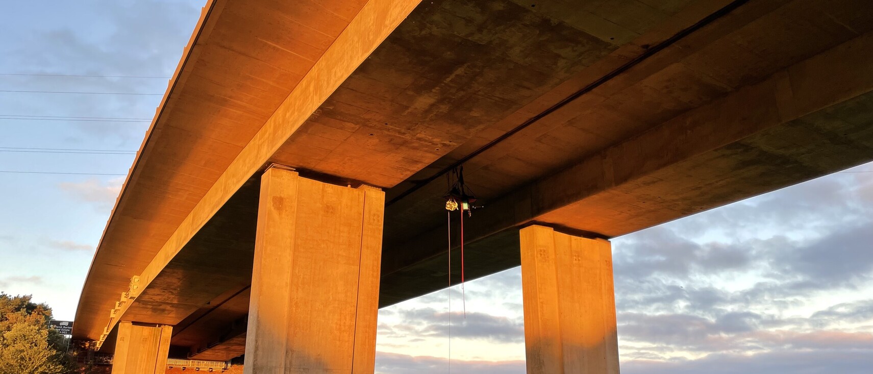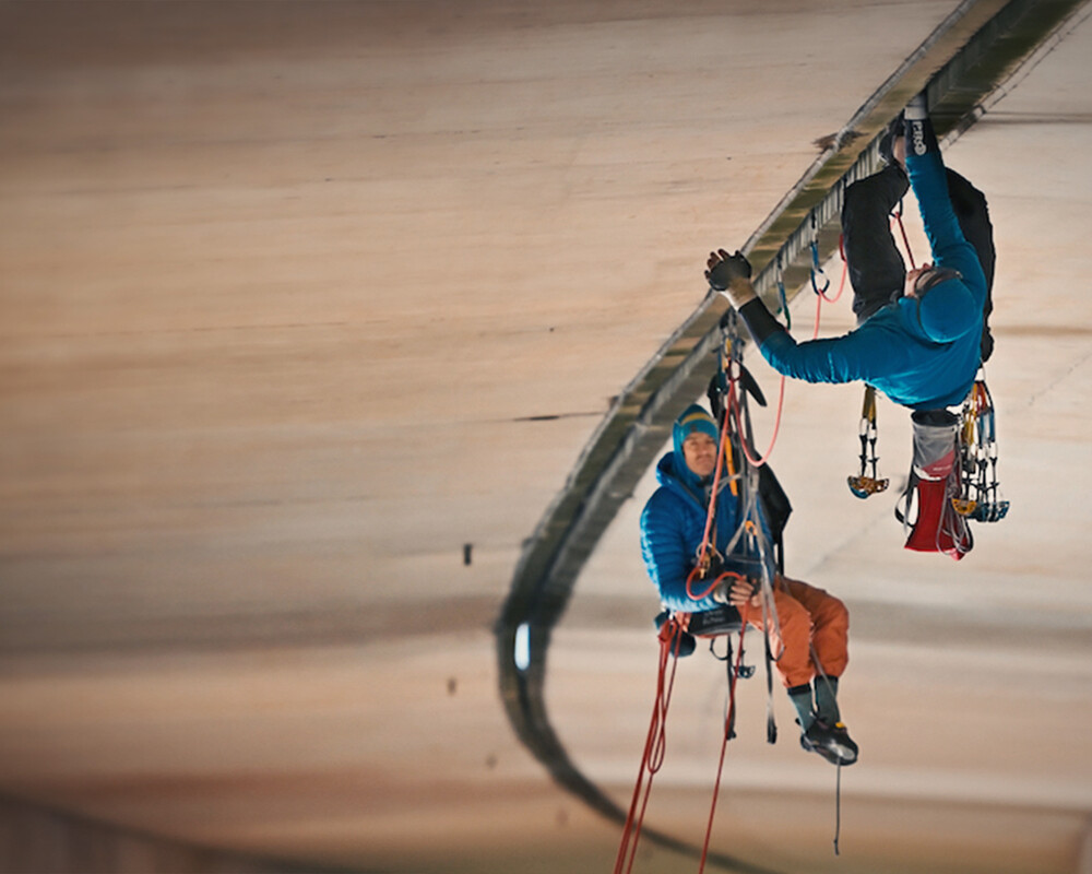 The project was always very, very weird right from the outset. And because it was born out of the COVID years, there were a lot of bizarre things going on, so we thought, why does the approach have to be normal? We needed to do things [during this time] that would just make us laugh. We thought it would be hilarious to order pizza while hanging under a bridge. We totally could have done something else like taken some sandwiches, but it just seemed funnier. And we didn't really want to come back down to the ground. We wanted to feel like we were on an expedition.