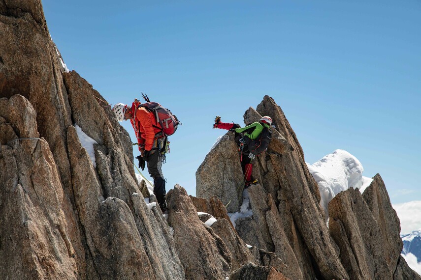 Au début de la saison 2024, la grimpeuse polyvalente Freja Shannon chute lourdement sur la face nord des Droites, dans les Alpes françaises – le diagnostic : une fracture du dos. Malgré un pronostic sombre, Freja se relève étonnamment vite, d’abord sur ses jambes, puis vers les falaises. Avec sa partenaire de cordée Ariane Moreau, elle s’attaque à la voie « Ave Caesar » – une parfaite voie traditionnelle en 7c, sur le spectaculaire Petit Clocher du Portalet (2 823 m) en Suisse.